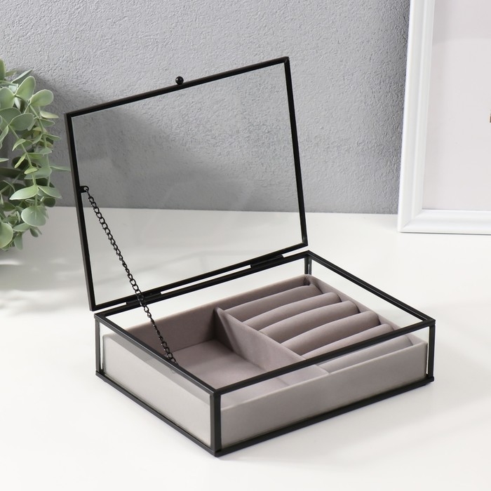 Шкатулка стекло с металлическим каркасом "Мерлин" светлая 16х20х6 см
