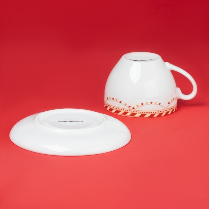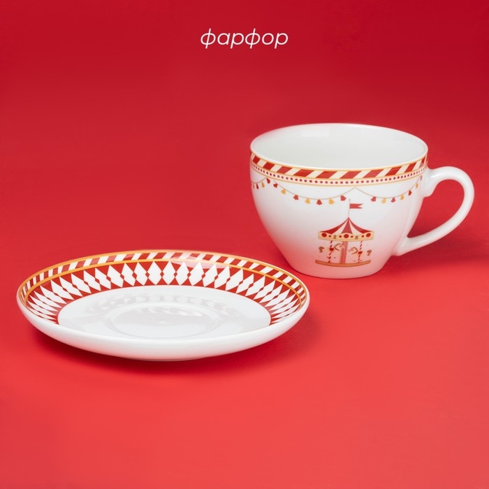 Новогодняя чайная пара Доляна «Парк аттракционов», 2 предмета: чашка, блюдце, фарфор, цвет белый