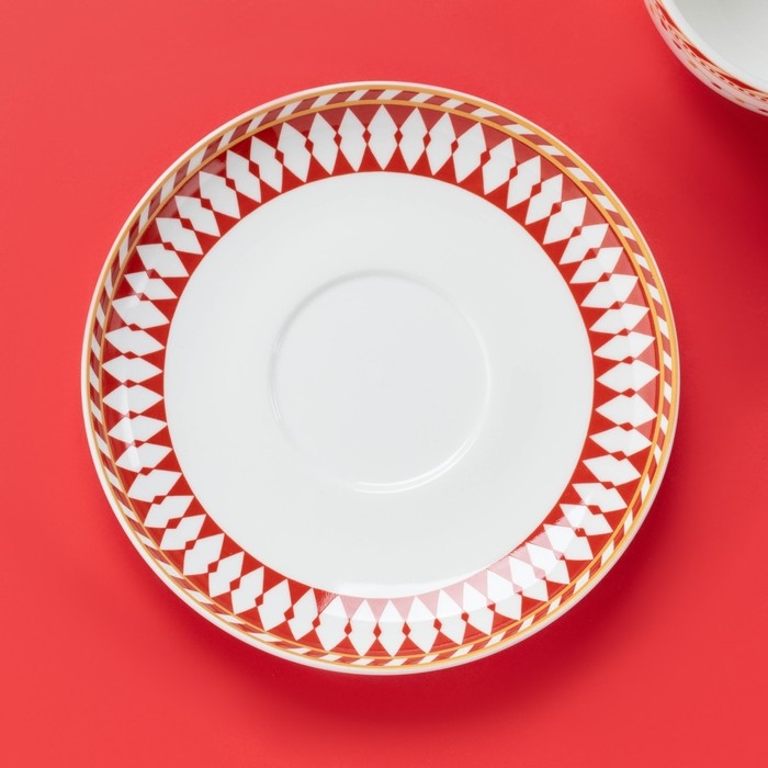 Чайная пара фарфоровая Magistro «Церера», 2 предмета: чашка 250 мл, блюдце d=16,3 см, цвет оранжевый