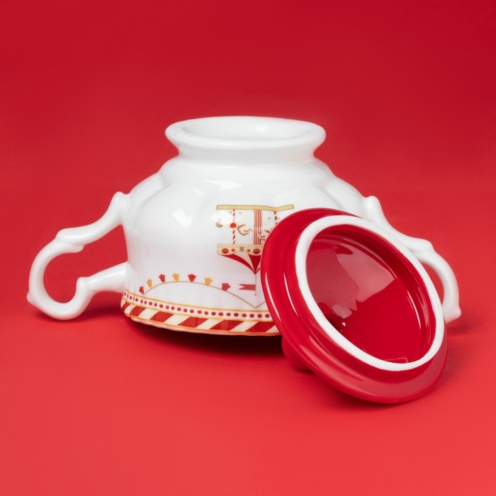 Сахарница новогодняя Доляна «Парк аттракционов», 400 мл, фарфор, цвет белый