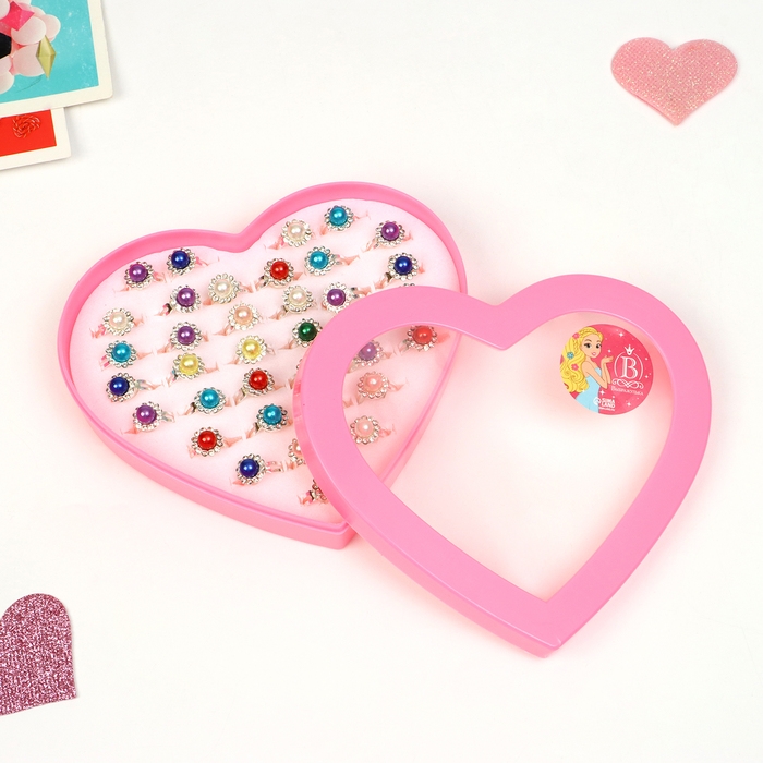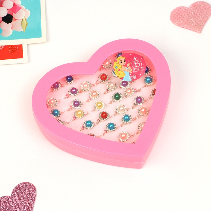 Кольца детские набор 36шт «Выбражулька» цветочки, цвет МИКС в серебре, б-р