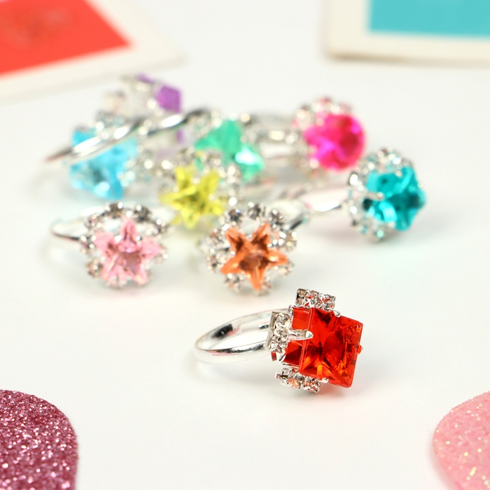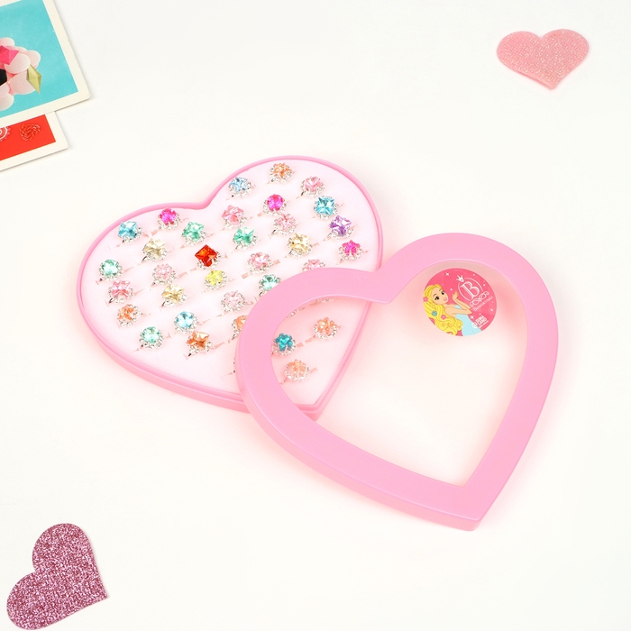 Кольца детские набор 36шт «Выбражулька» геометрия, цвет МИКС, форма МИКС в серебре, б-р