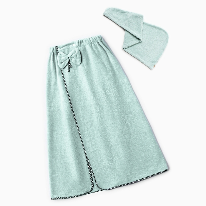 Набор для бани и ванной Этель "Бантик", цв. мятный: полотенце-парео 75*120 см + чалма