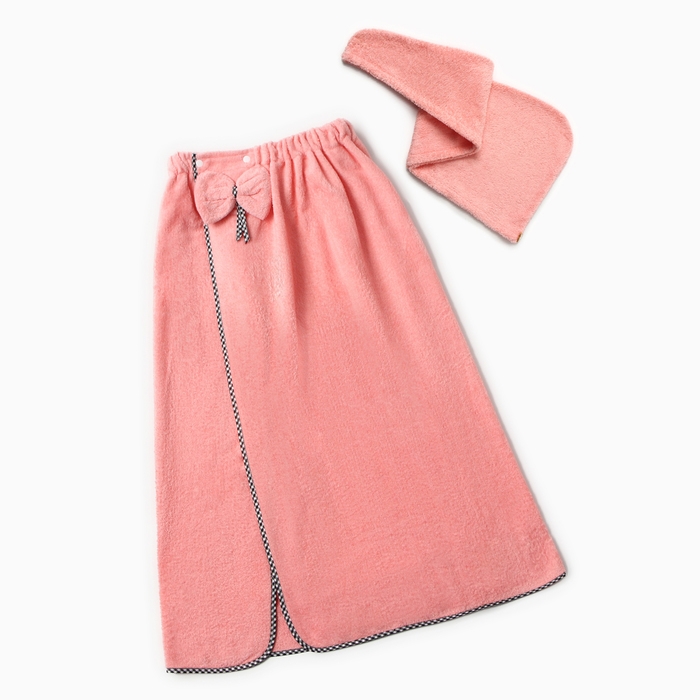 Набор для бани и ванной Этель "Бантик", цв. персиковый: полотенце-парео 75*120 см + чалма
