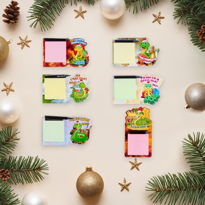 Набор магнитов с блоком для записей "Символ года - 2" 6 штук