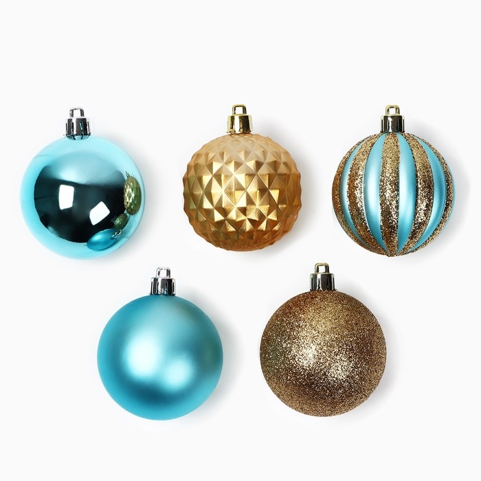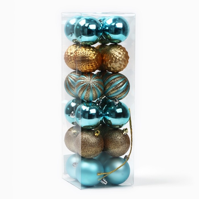 Ёлочные шары новогодние, на Новый год, d=6 см, 24 шт., цвет бирюзовый и золотой