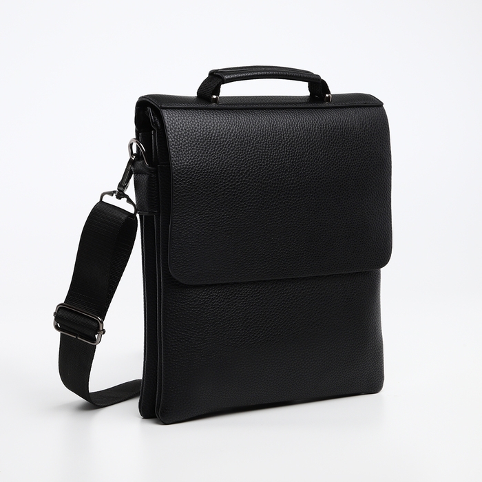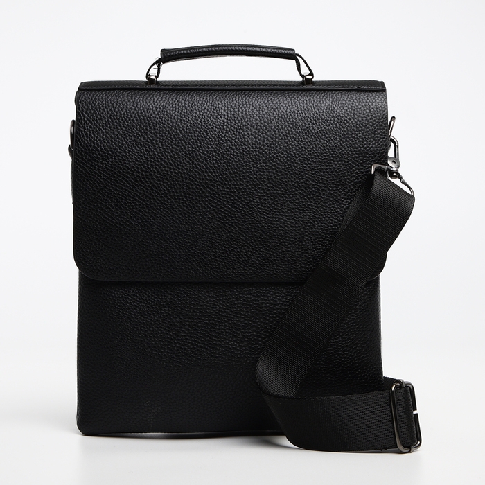 Сумка мужская на клапане TEXTURA, наружный карман, цвет чёрный