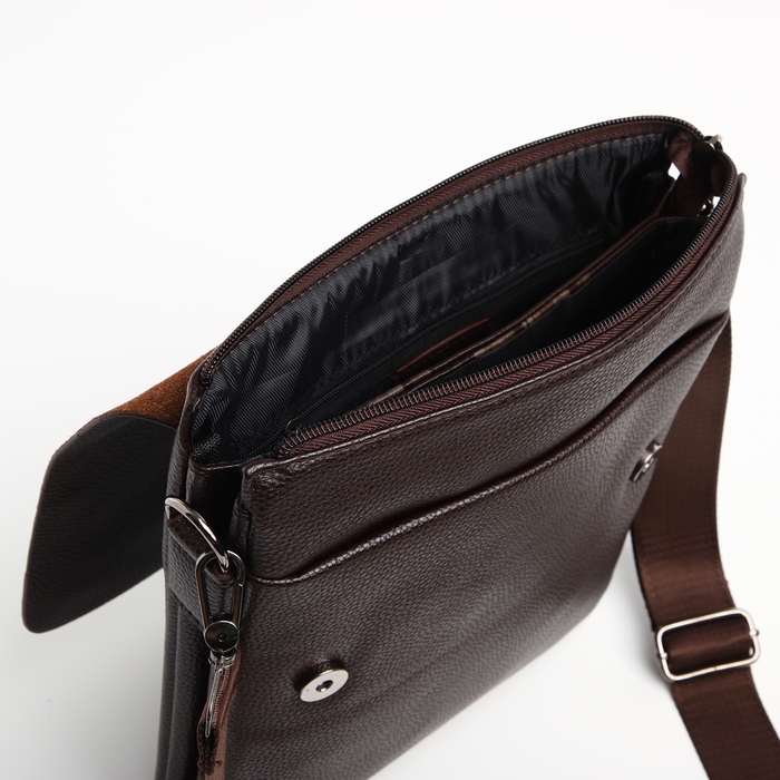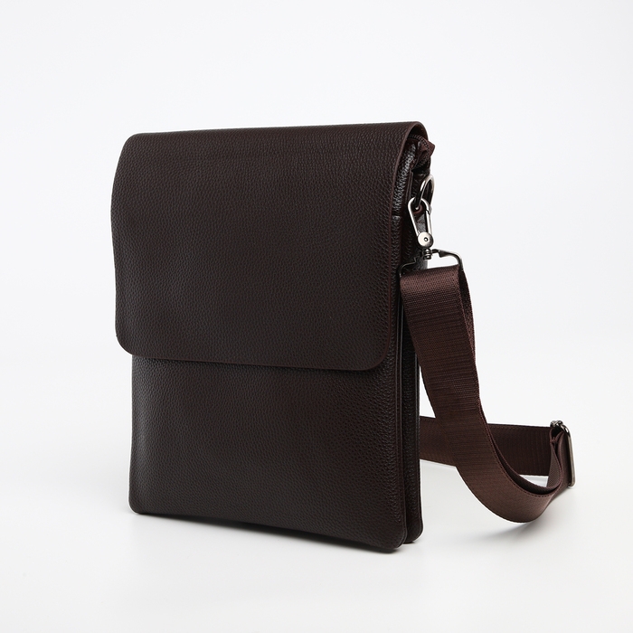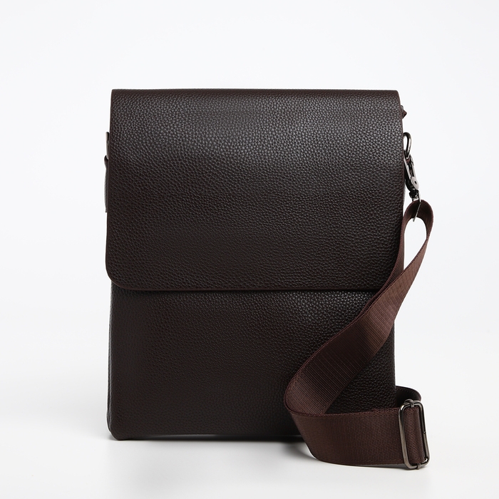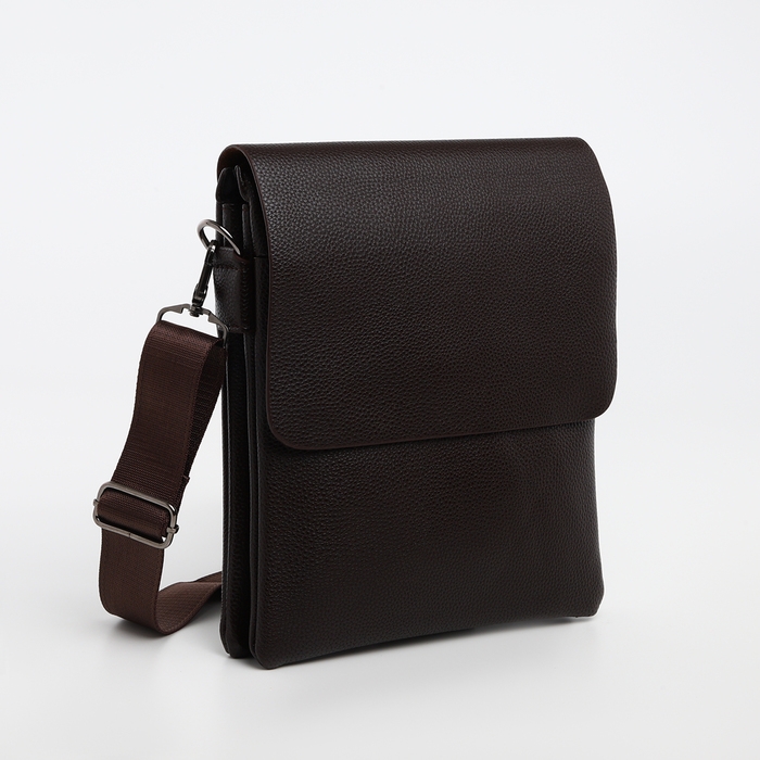 Сумка мужская на клапане TEXTURA, наружный карман, цвет коричневый
