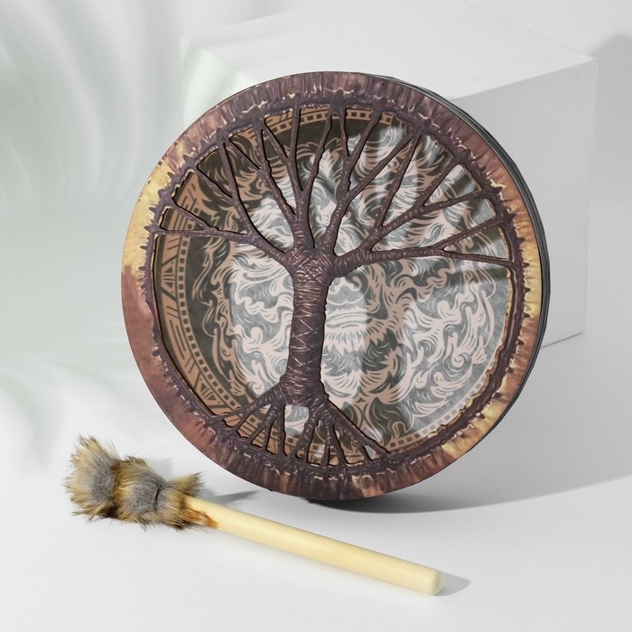 Шаманский бубен "Медведь" с колотушкой 5х25х25 см
