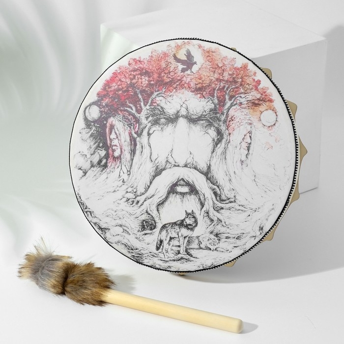 Шаманский бубен "Хранитель леса" с колотушкой 5х25х25 см