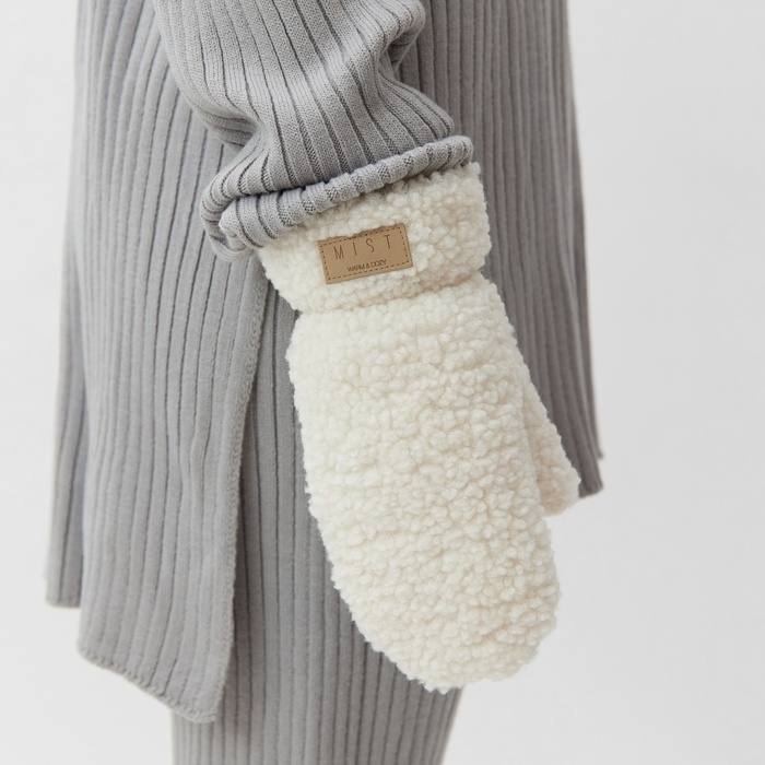 Варежки женские на иск. меху MIST, р-р. 26см, молочный
