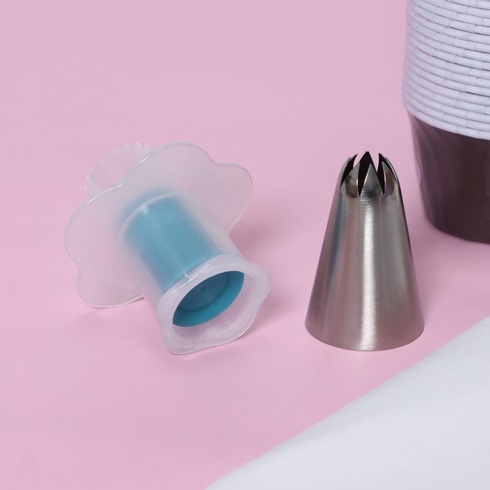 Набор кондитерский для капкейков Доляна, кондитерский мешок 1 шт, насадка 2 шт, форма 50 шт
