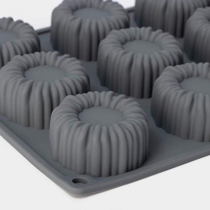 Форма для муссовых десертов и выпечки Доляна «Рябь», силикон, 18×18 см, внутренний размер 16×6,5 см, цвет белый