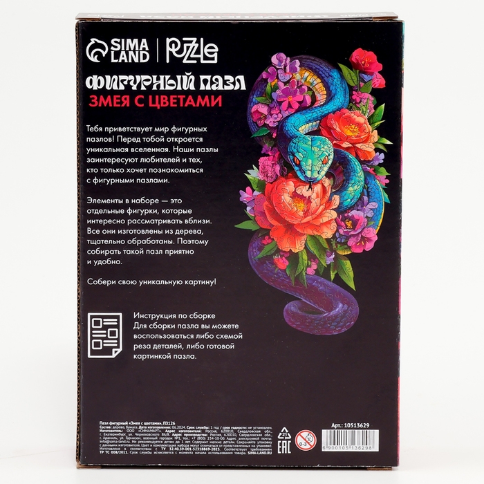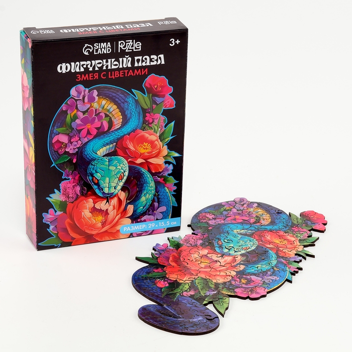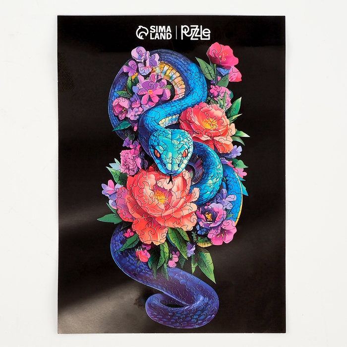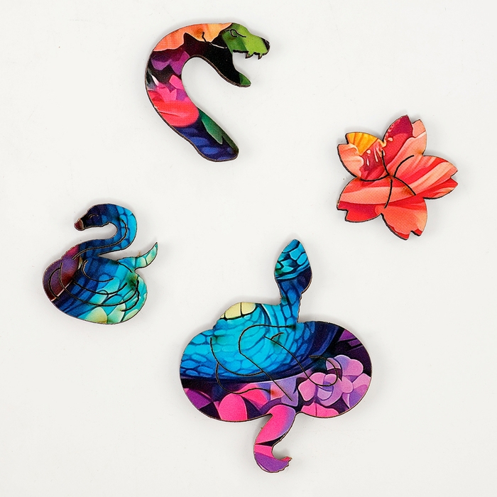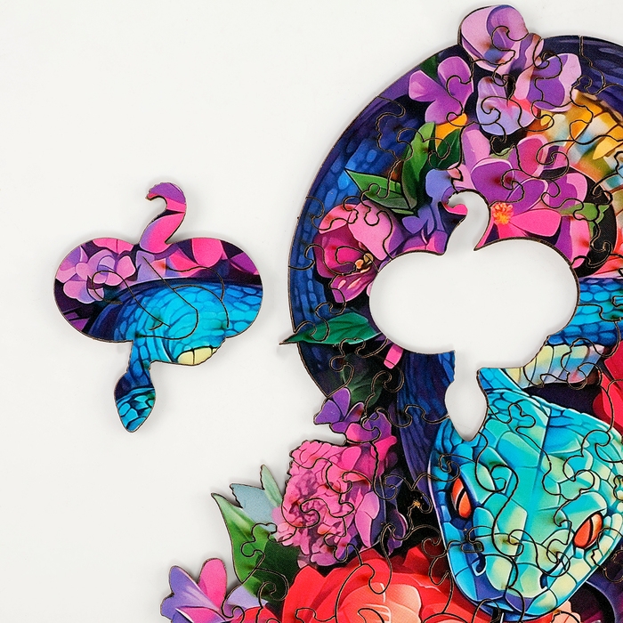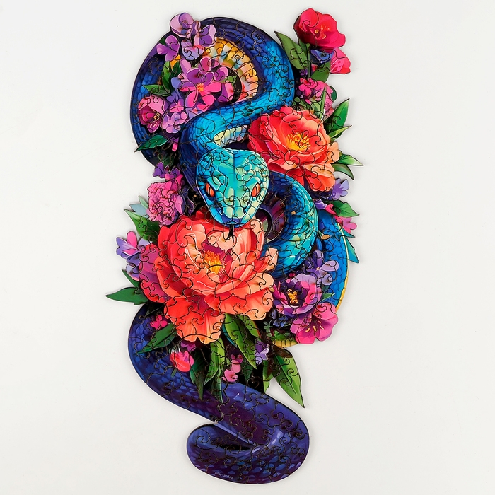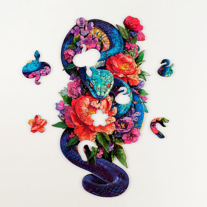 Пазлы фигурные деревянные на новый год «Змея с цветами», 134 элементов, символ года 2025