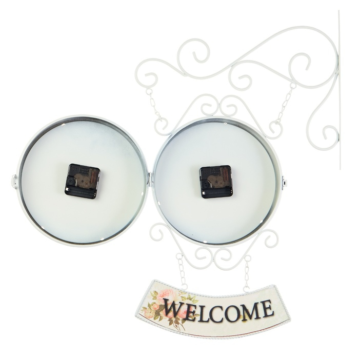 Часы настенные двусторонние, на подвесе "WELCOME", d-23 см, 47 х 31 см, 2 АА, белые