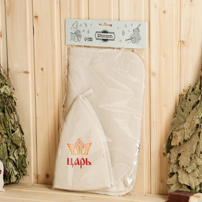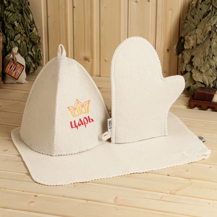 Набор для бани "Царь" шапка, коврик, рукавица