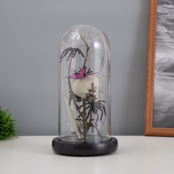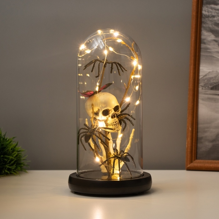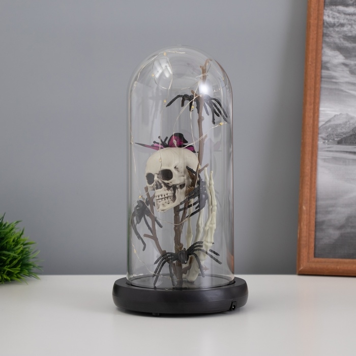 Светильник колба «Череп с пауками» 1,5Вт, LED, 3xAAA, черный USB 11х11х21см