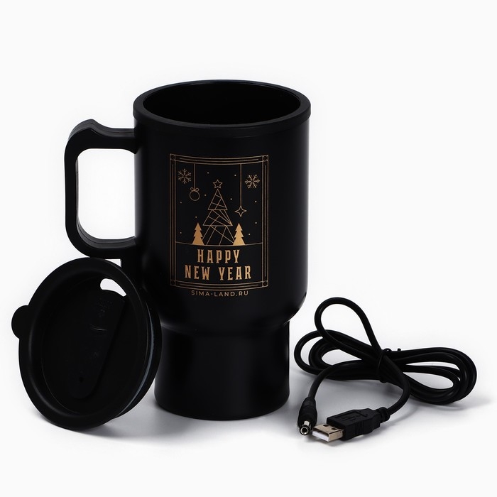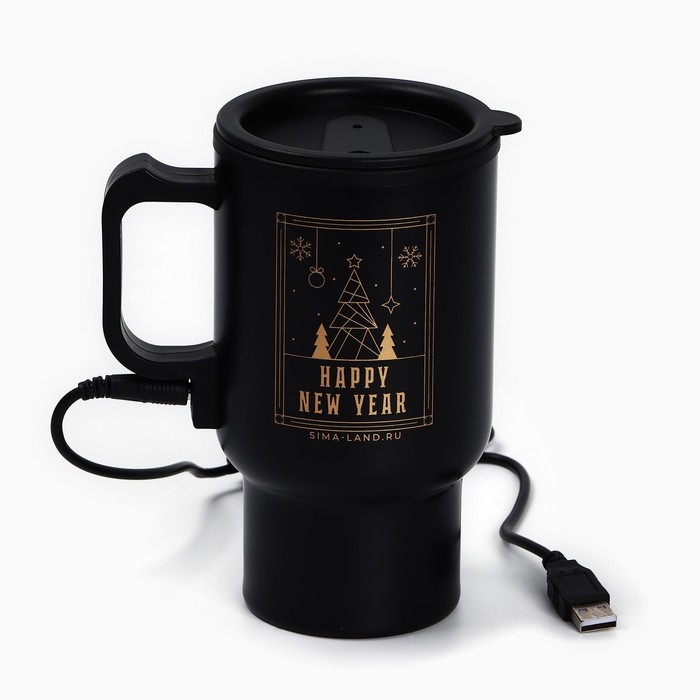 Новый год. Термокружка с USB кабелем «Happy New Year», 450 мл