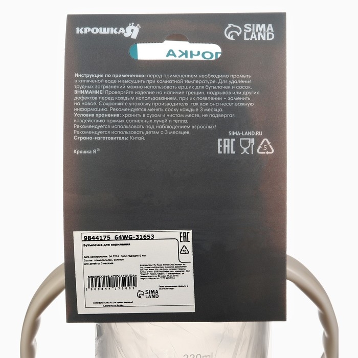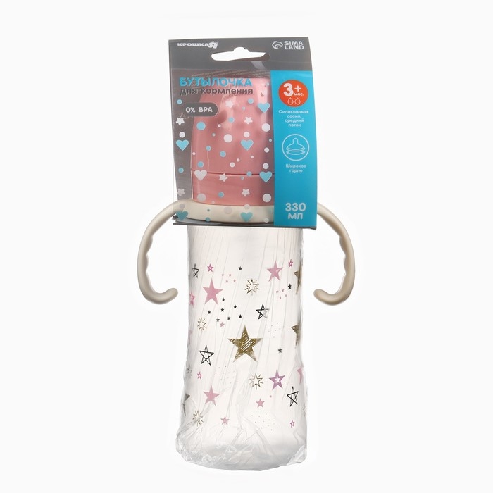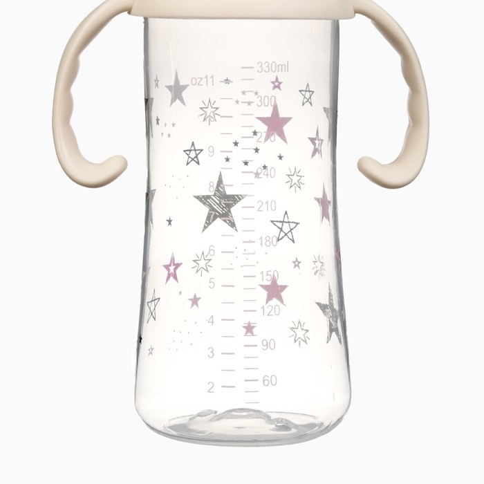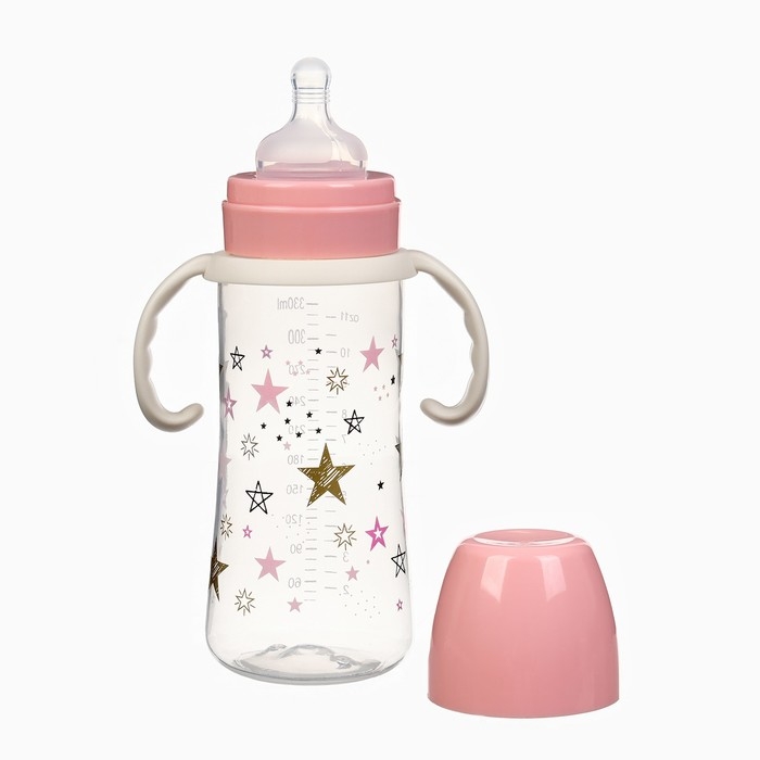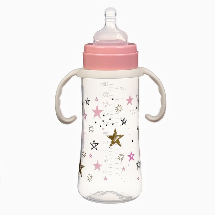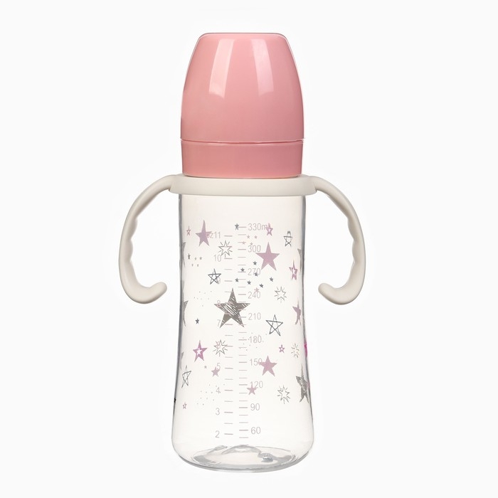 Бутылочка для кормления Ø50мм ШГ, «Звезды», 330мл, +3мес., цвет розовый, ручки молочные