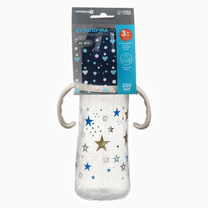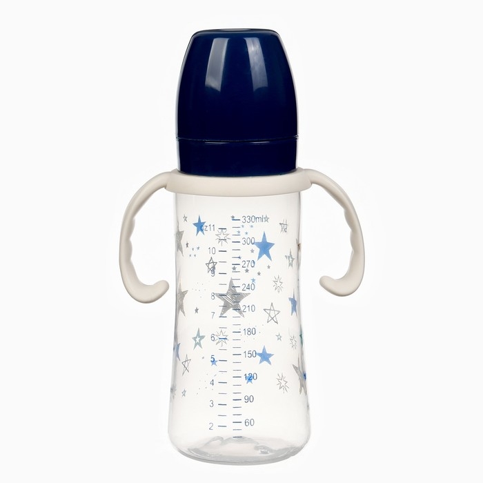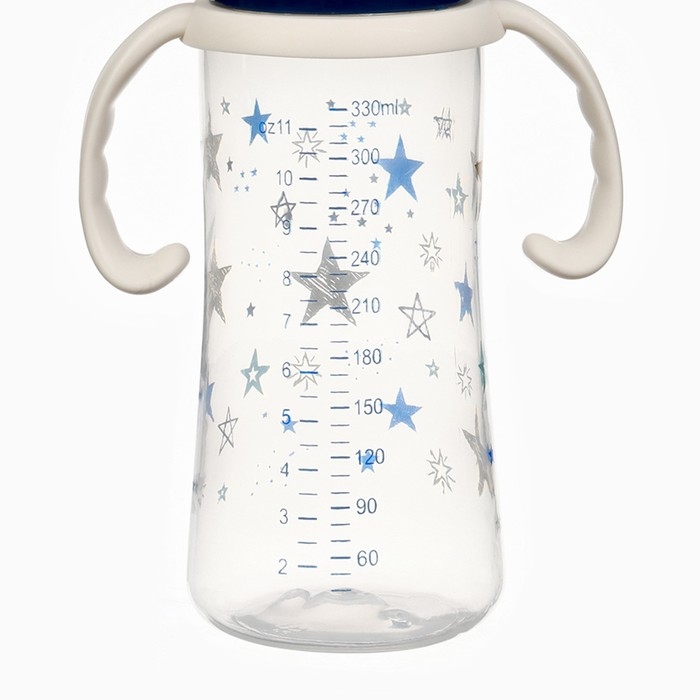 Бутылочка для кормления Ø50мм ШГ, «Звезды», 330мл, +3мес., цвет темно-синий, ручки молочные 984417