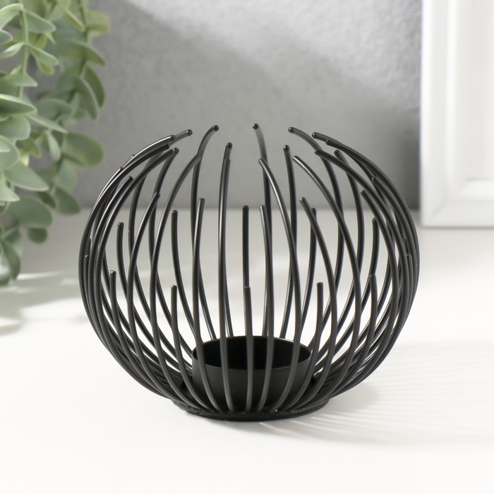 Подсвечник на1 свечу металл d=5 см "Шар из прутьев" чёрный 11,5х11,5х9,5 см