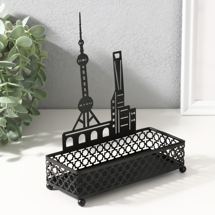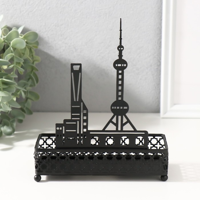 Подставка интерьерная металл "Город" чёрный 6,3х14,5х18,5 см