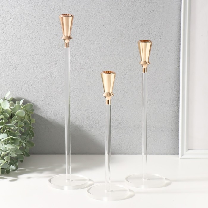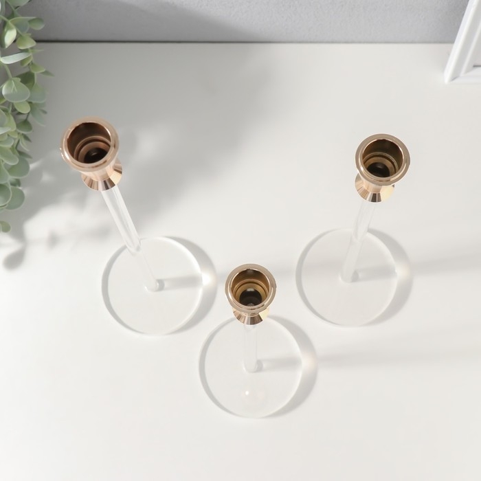 Подсвечник металл, акрил "Мондоро" набор 3 шт 7х7х15, 7х7х18, 7х7х21,5 см