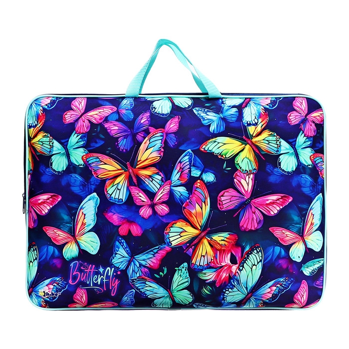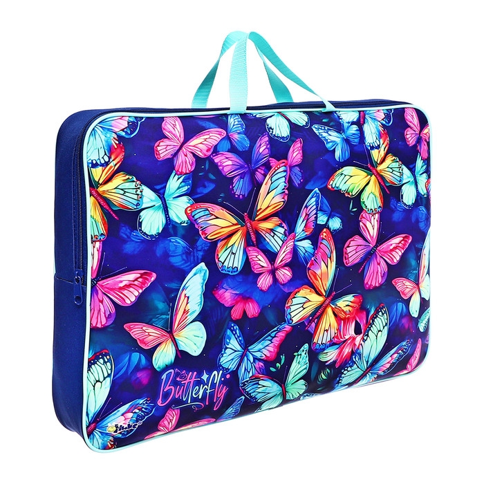 Папка для чертежей и рисунков А3, 470 х 350 х 75 мм, с ручками, текстильная, ПМД 3-20-4 "Неоновые бабочки" (тесьма) 71719