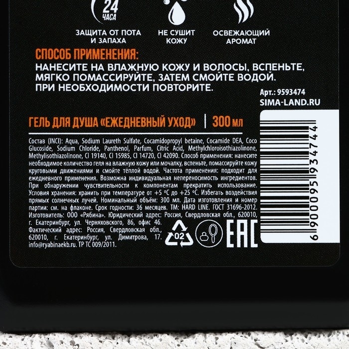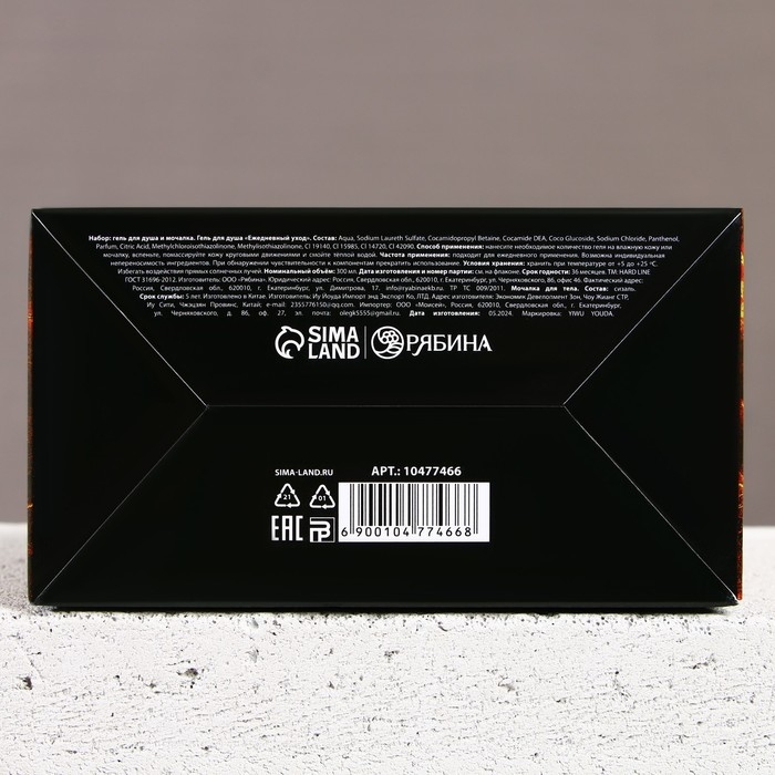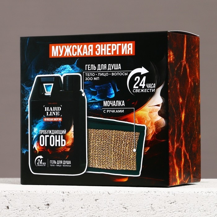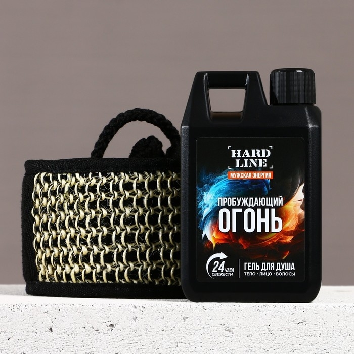 Подарочный набор косметики «Мужская энергия», гель для душа во флаконе канистры 300 мл и мочалка для тела, аромат древесный с пряными нотами, HARD LINE