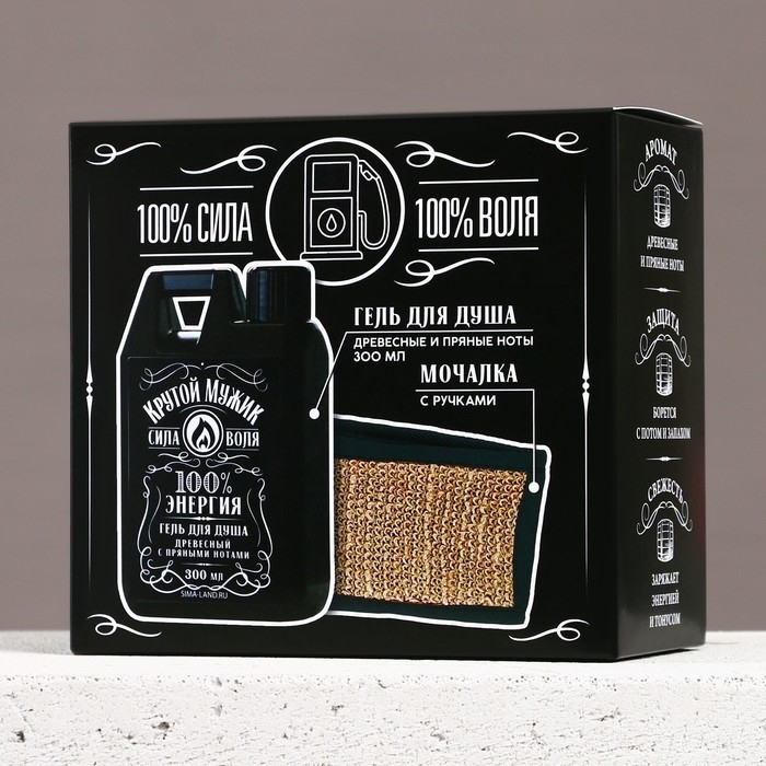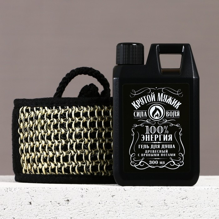 Подарочный набор косметики «Крутой мужик», гель для душа во флаконе канистры 300 мл и мочалка для тела, аромат древесный с пряными нотами, HARD LINE