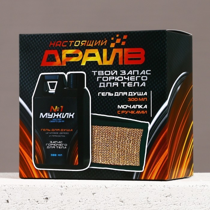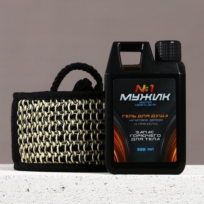 Подарочный набор косметики «Настоящий драйв», гель для душа во флаконе канистры 300 мл и мочалка для тела, аромат агарового дерева и пряностей, HARD LINE