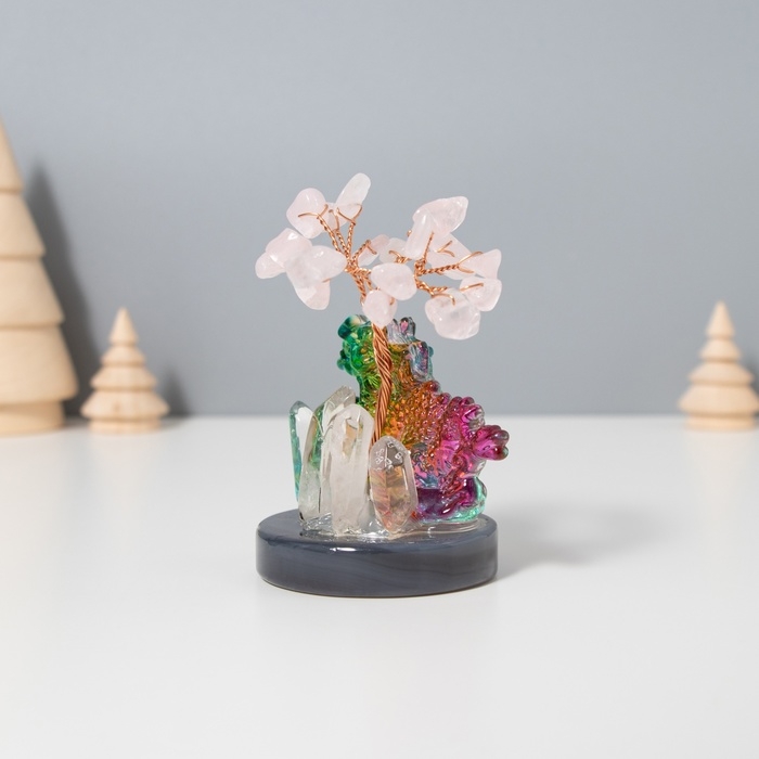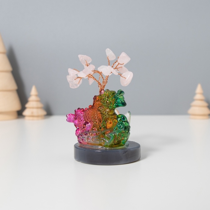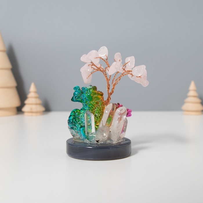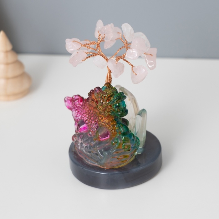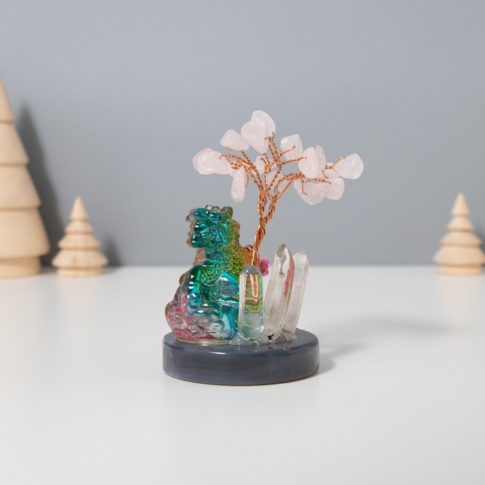 Сувенир стекло, металл "Деревце под защитой дракона" 18 камней, розовый 5,5х5,5х9 см