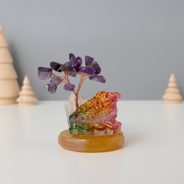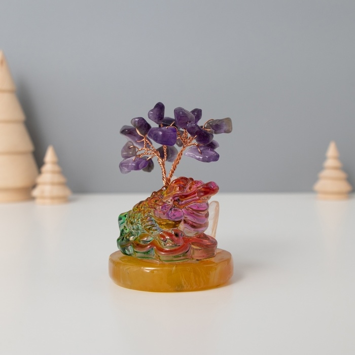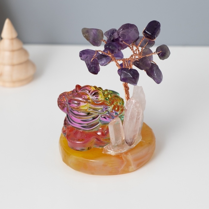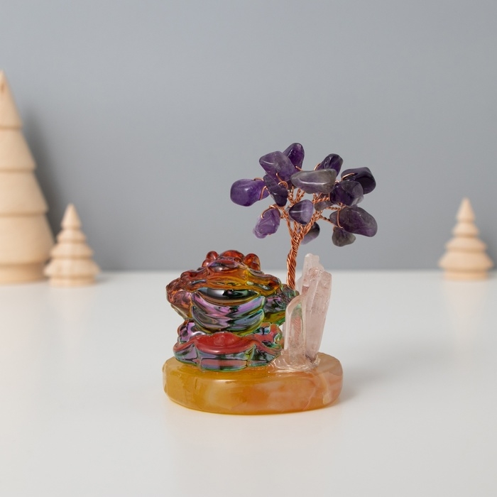 Сувенир стекло, металл "Деревце под защитой жабы" 18 камней, фиолетовый 5,5х5,5х9 см