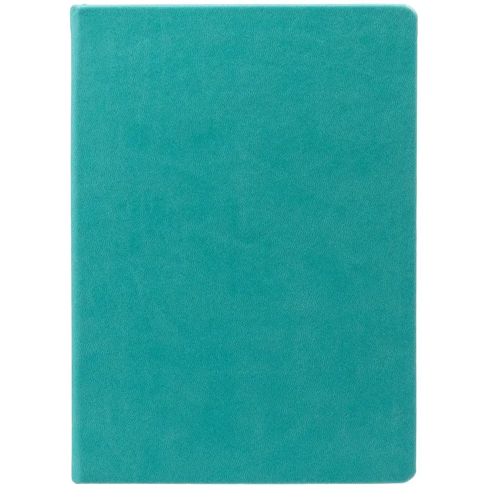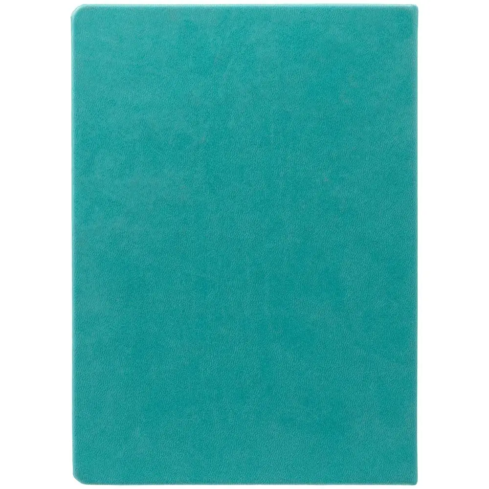 Ежедневник с твердой обложкой и тонированным обрезом. Выполнен из материала Latte, бирюзовый, дополнен ляссе в цвет обложки.