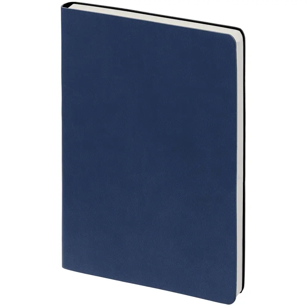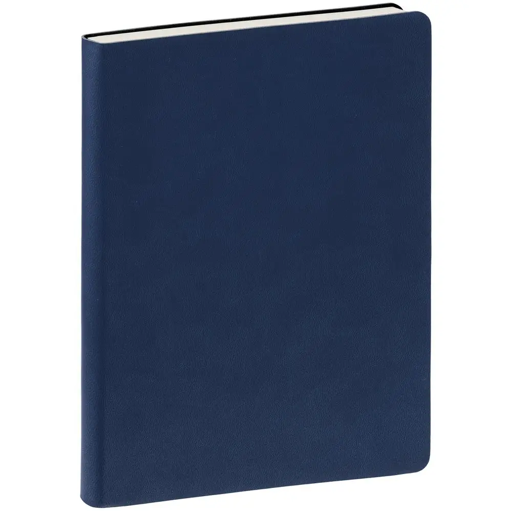 Ежедневник с гибкой обложкой, выполнен из материала Latte, темно-синий, дополнен ляссе в цвет обложки.
