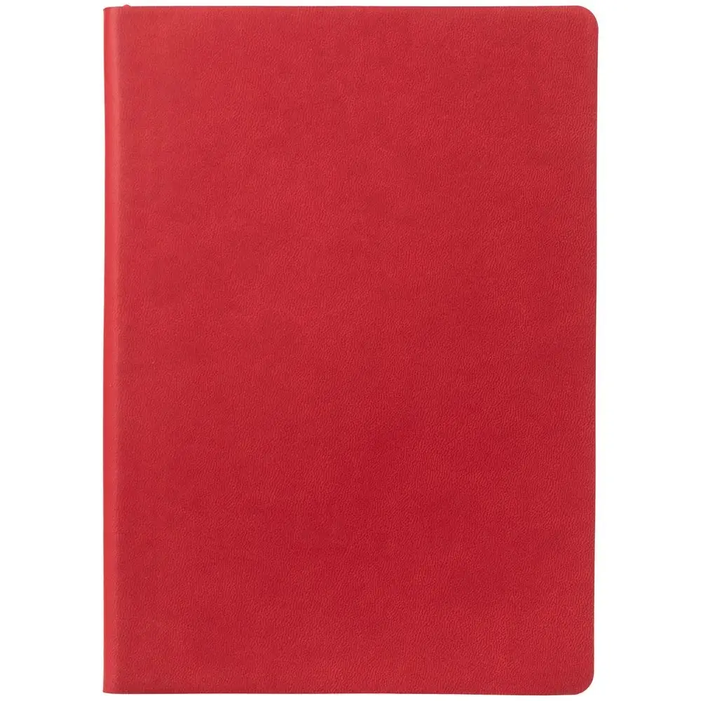Ежедневник с гибкой обложкой, выполнен из материала Latte, красный, дополнен ляссе в цвет обложки.