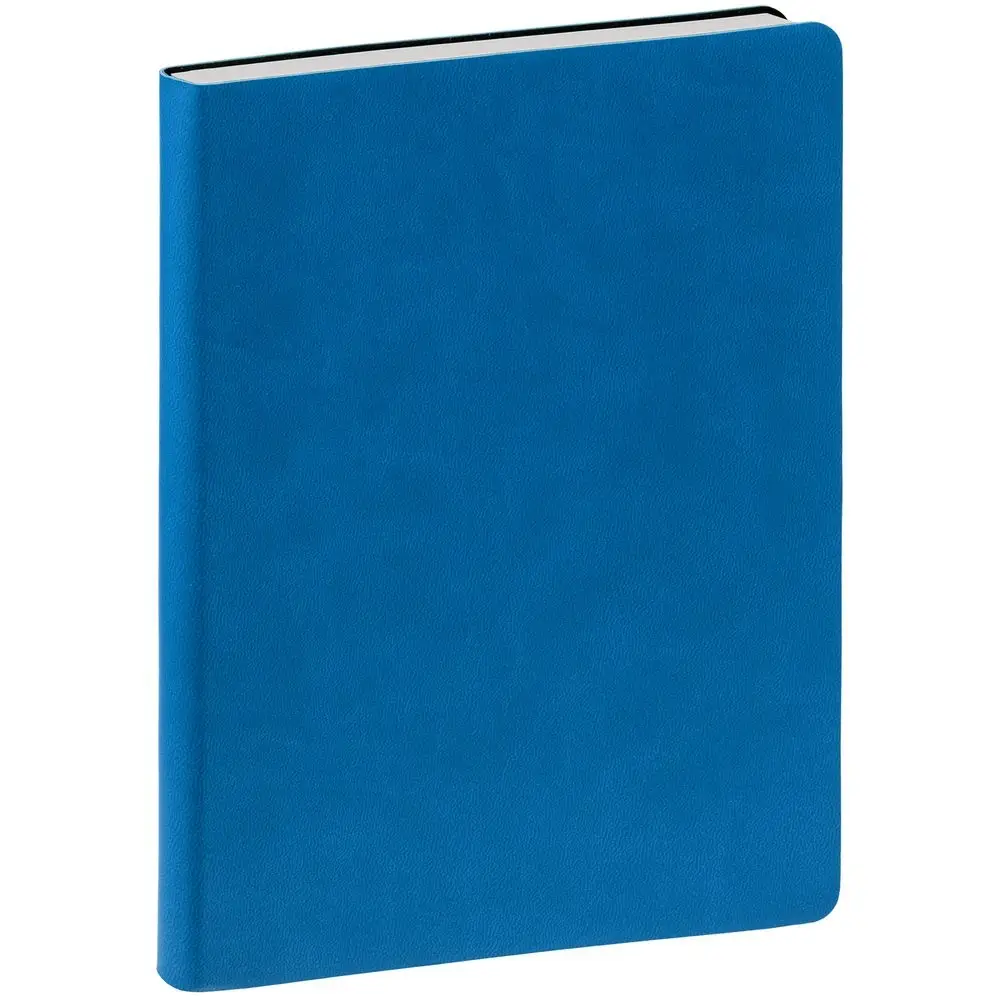 Ежедневник с гибкой обложкой, выполнен из материала Latte, ярко-синий, дополнен ляссе в цвет обложки.