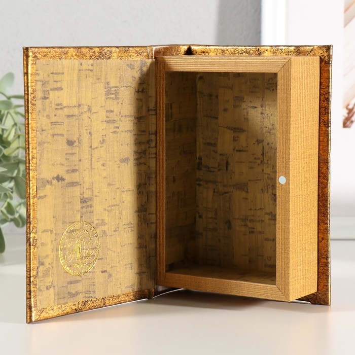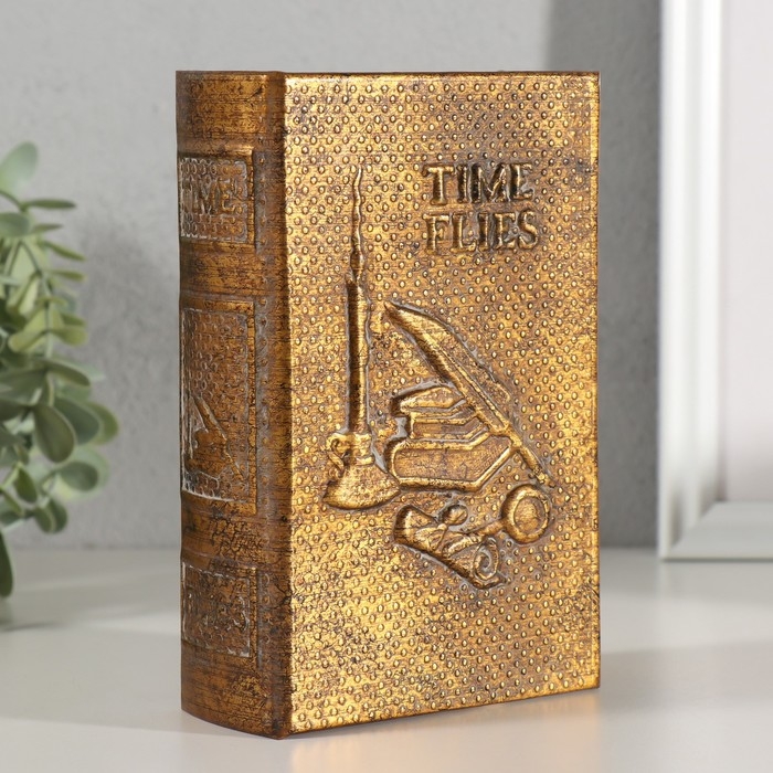 Шкатулка-книга дерево, кожзам "Время летит незаметно" тиснение, под металл 16,5х11,2х5 см