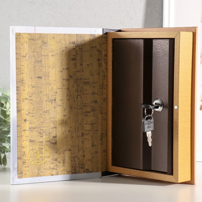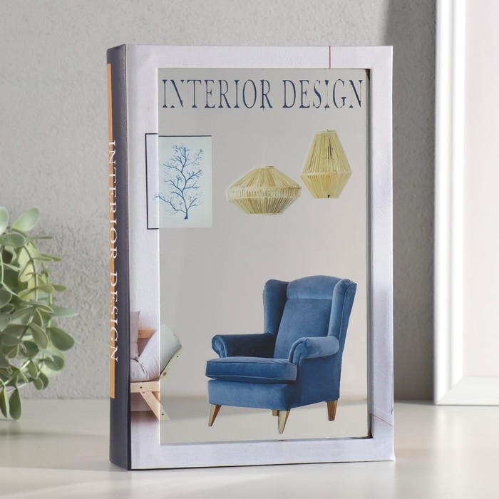 Сейф-книга дерево, кожзам, зеркало "Дизайн интерьера" 24х16х5 см