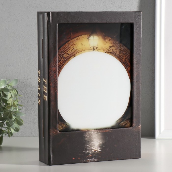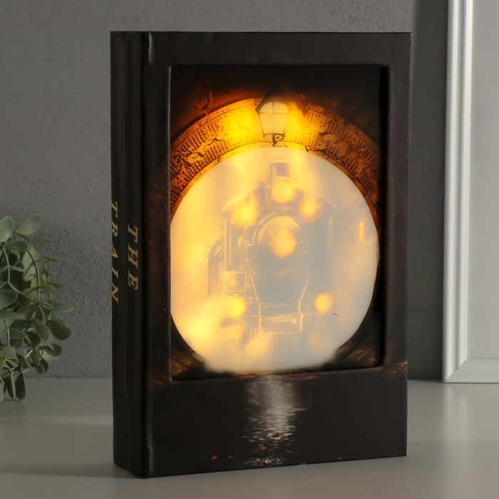 Шкатулка-книга дерево, кожзам, свет "Поезд в туннеле" 28х19х6 см
