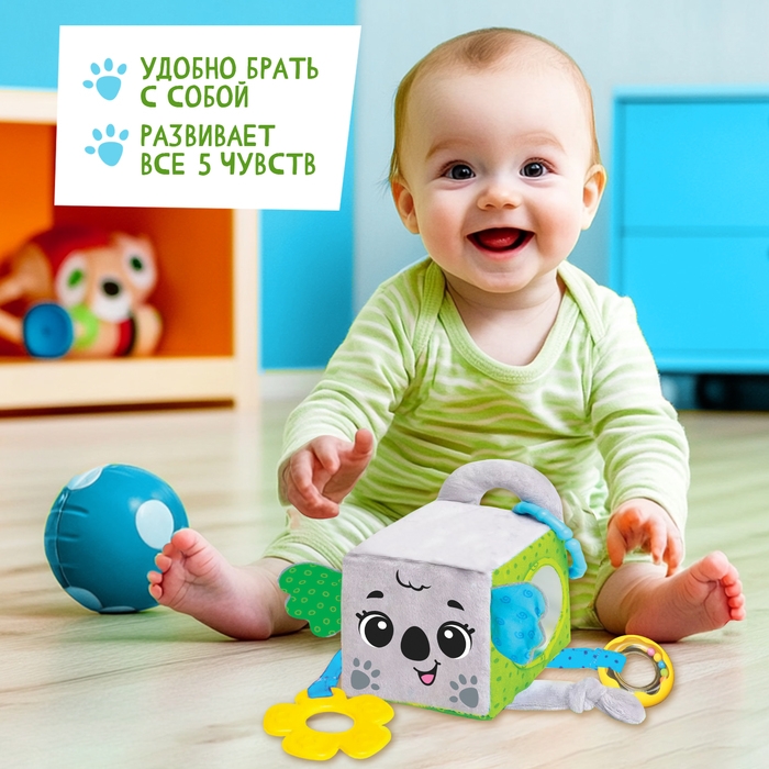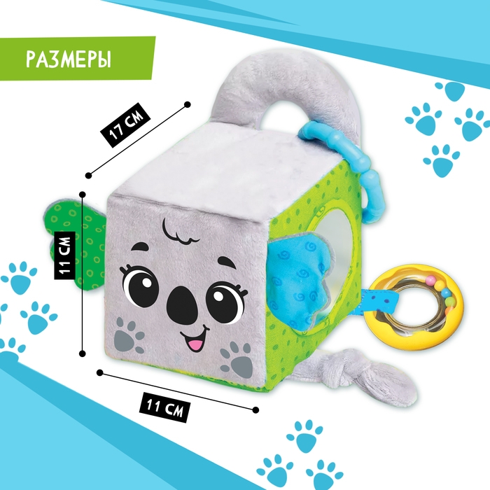 Развивающая игрушка «Кубик: Коала», с прорезывателем, шуршит и звенит