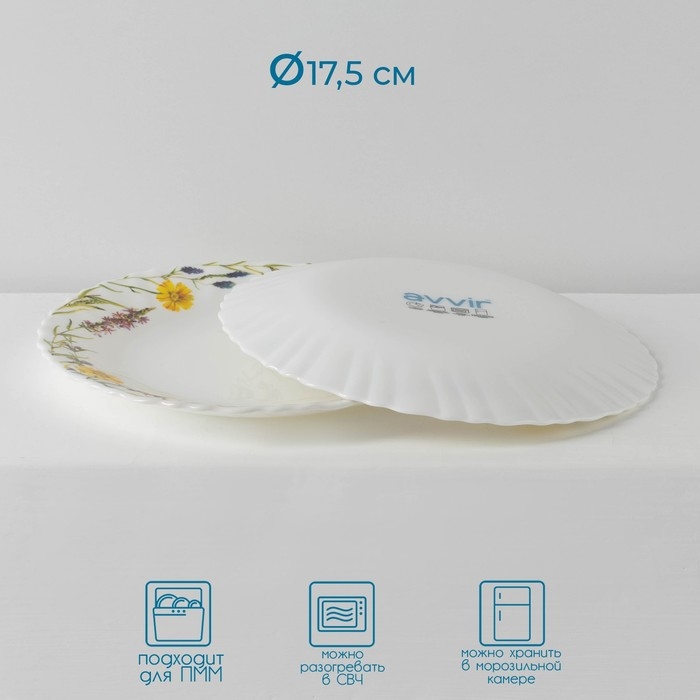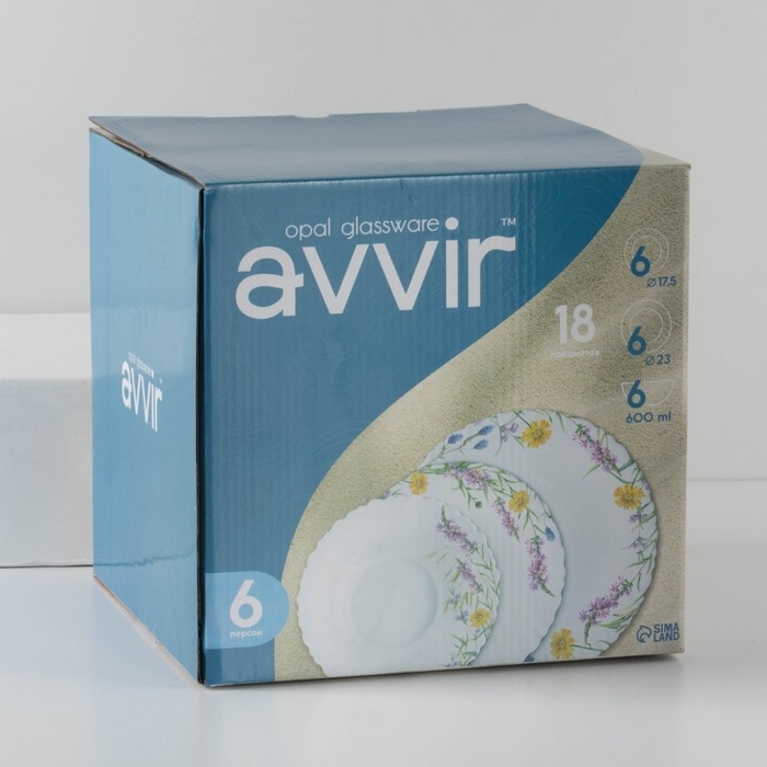 Сервиз столовый Avvir «Полевые цветы», 18 предметов: 6 тарелок d=16,5 см, d=17,5 см, d=23 см, стеклокерамика, цвет белый