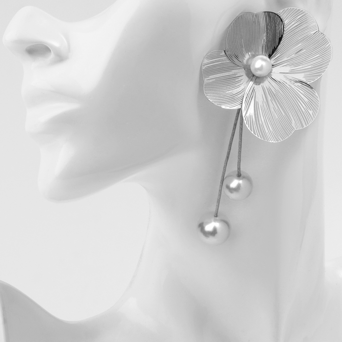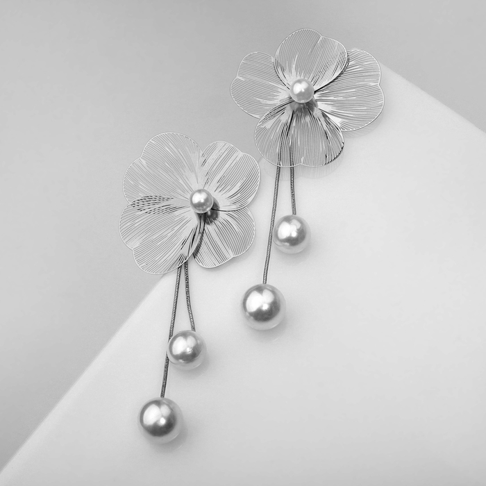 Серьги с жемчугом «Бусина» каталея, цвет серебро