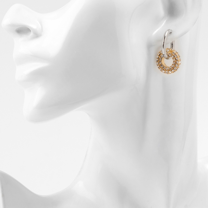 Серьги со съёмным элементом «Трансформер» круги, цвет серебро с золотом