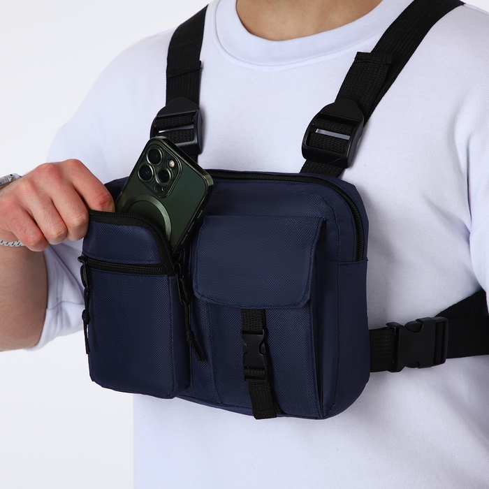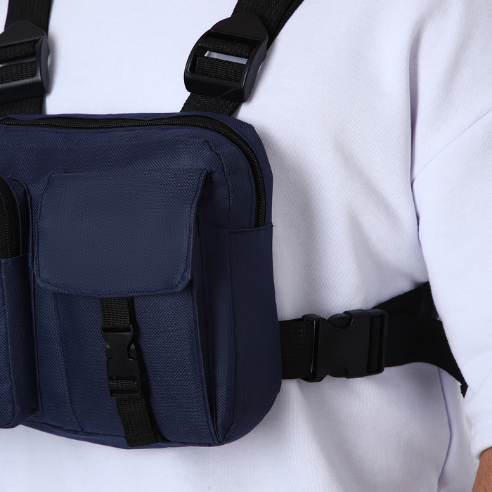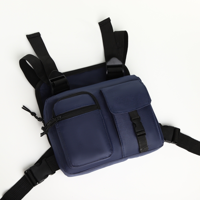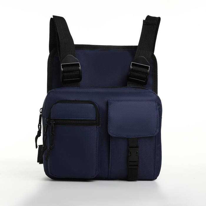 Сумка нагрудная на молнии, 2 наружных кармана, цвет синий