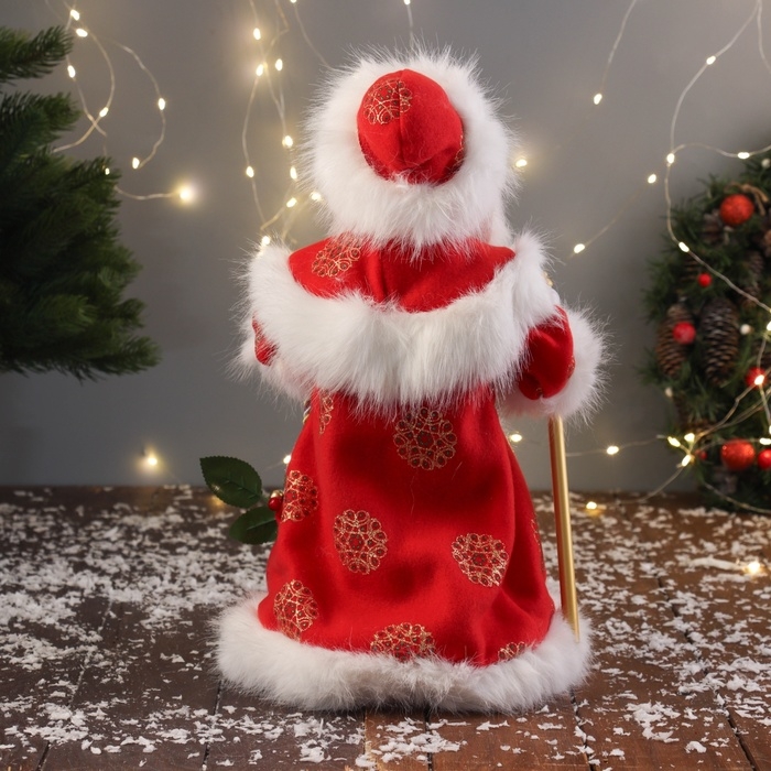 Дед Мороз "В пушистой шубе, с мешком" двигается, 40х22 см, красный