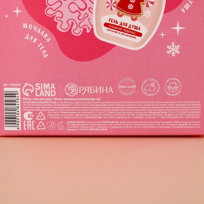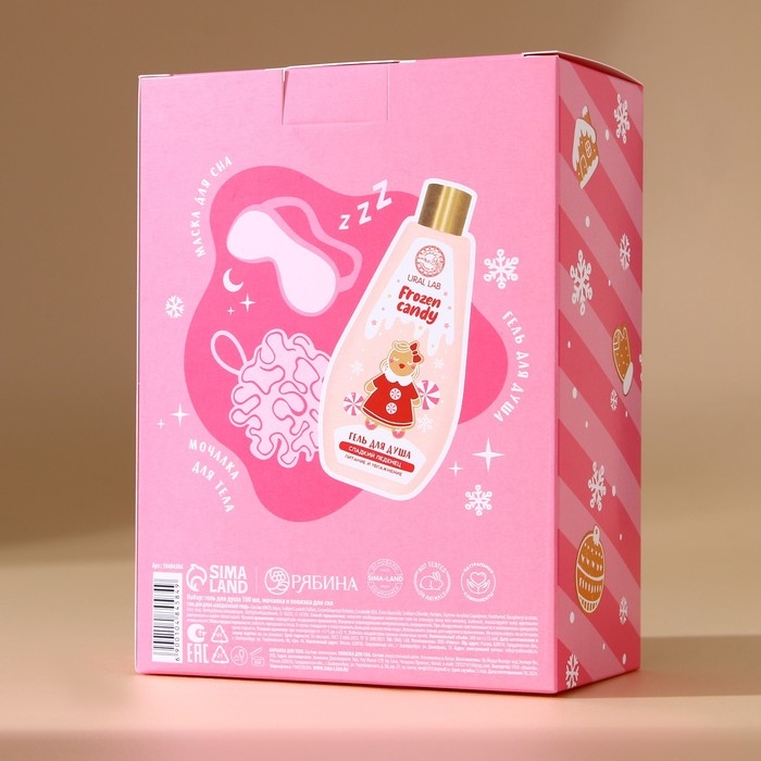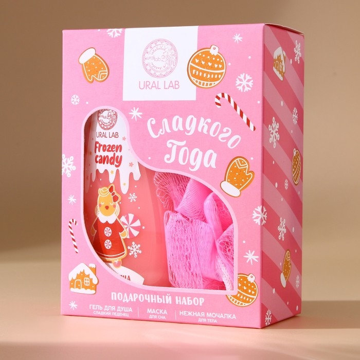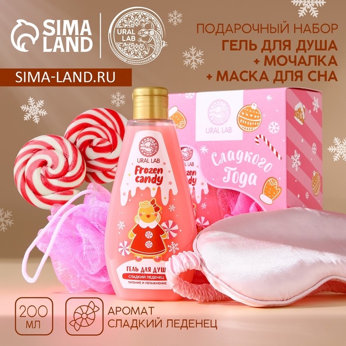 Подарочный набор косметики «Сладкого года», гель для душа 200 мл, мочалка для тела и маска для сна, аромат сладкого леденца, Новый Год