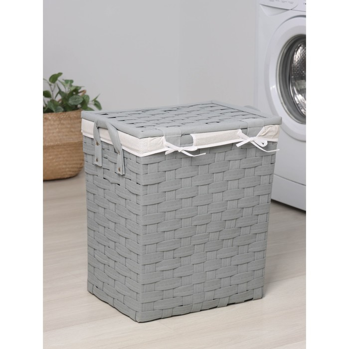 Корзина для белья Доляна «Плетение», с крышкой, 46×34×50 см, цвет серый
