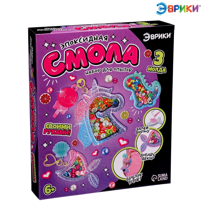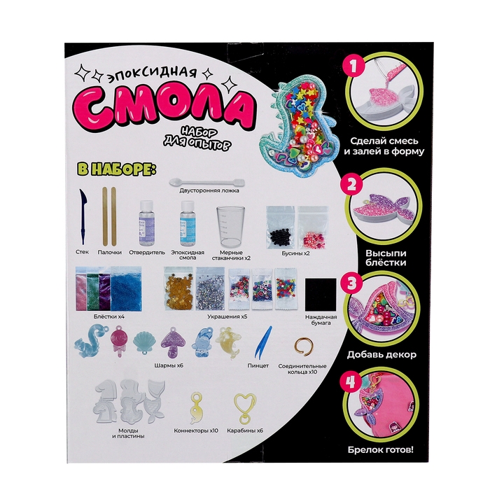 Набор для опытов «Эпоксидная смола» — идеальное решение для занятия творчеством! Ребёнок проведёт увлекательный эксперимент и создаст уникальные брелоки из эпоксидной смолы!