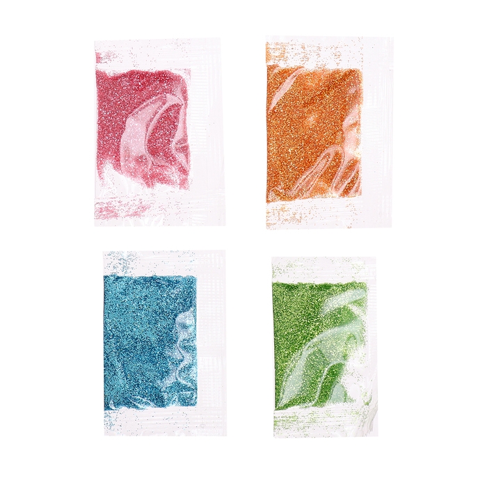 - Добавьте сухих блёсток поверх залитой формы и оставьте застывать на сутки на ровной поверхности. Используйте зубочистку, чтобы удалить пузырьки воздуха или переместите блёстки. не засыпайте много декор, чтобы он мог двигаться внутри брелока.